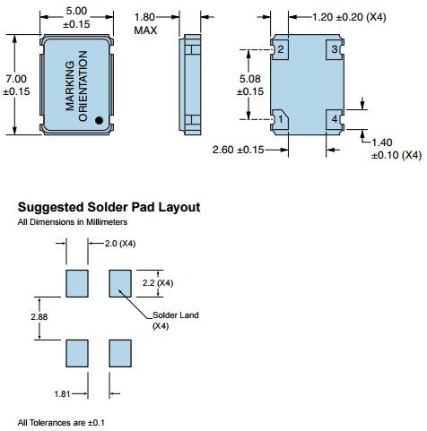 Size/Dimension尺寸 7.0mm x 5.00mm 最小包裝數MPQ: 1000