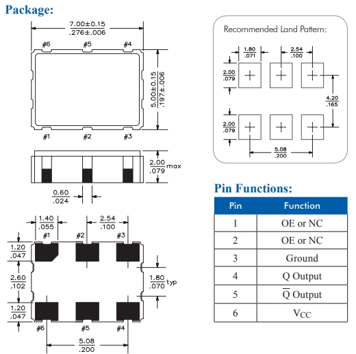 | Size/Dimension尺寸 | 7.00mm x 5.00mm | 最小包裝數(shù)MPQ: | 1000 |