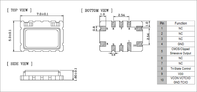 Size/Dimension尺寸 7.00mm x 5.00mm 最小包裝數MPQ: 1000